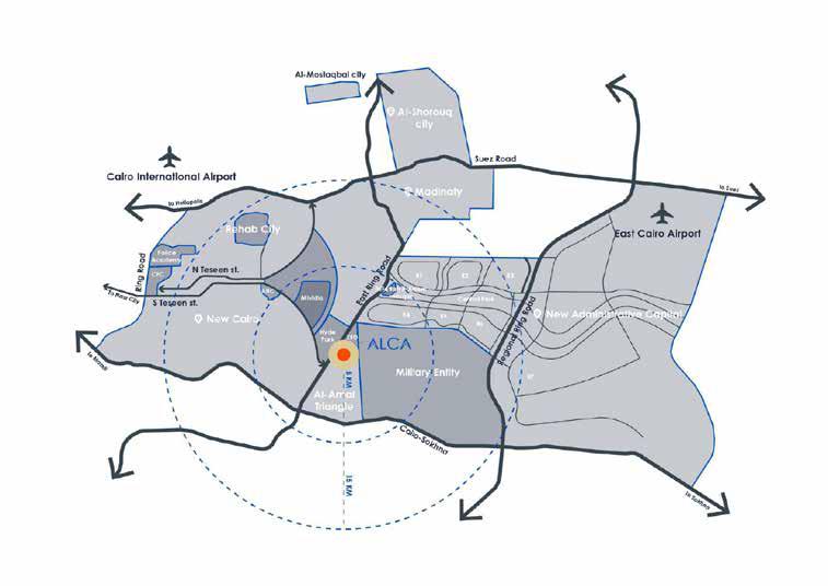 ويعزز موقع مشروع الكا بين العاصمة الإدارية والتجمع الخامس سهولة الوصول إلى المناطق الرئيسية في القاهرة، مما يسهل على السكان التنقل والوصول إلى وجهاتهم بسهولة، ويعزز أيضًا الاستثمار في المنطقة.